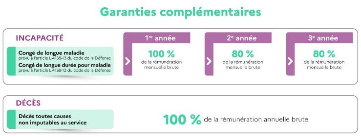 Pour les militaires, dans la mesure où les garanties statutaires sont principalement centrées sur les risques survenus en service, les garanties complémentaires sont, elles, centrées sur les risques survenus hors service.