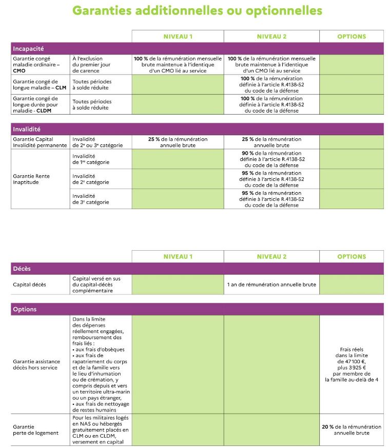 En revanche, les garanties additionnelles et optionnelles sont entièrement à la charge du militaire ayant décidé d’y souscrire.