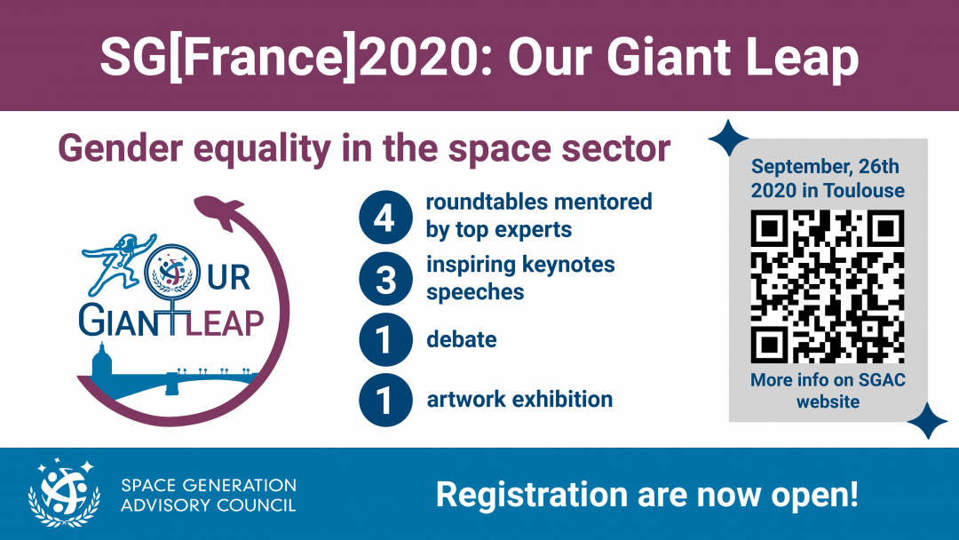 Les inscriptions sont ouvertes jusqu’au 9 août 2020 : https://spacegeneration.org/event/sgfrance-2020