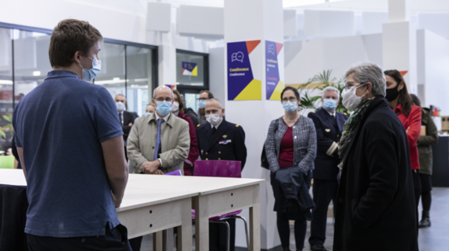 Le chantier du Learning center, bibliothèque numérique et collaborative, a été officiellement lancé le 15 octobre dernier par, madame Geneviève Darrieussecq, ministre déléguée, l’ingénieur général Pierre-Yves Guichard, directeur de l’ESID de Bordeaux (Établissement du Service d’Infrastructures de la Défense) et Olivier Lesbre, Directeur Général de l’Institut. Une occasion d’accueillir la ministre pour une visite guidée de l’Ecole et lui présenter ses actions en matière d’innovation, de recherche et d’engagement social.