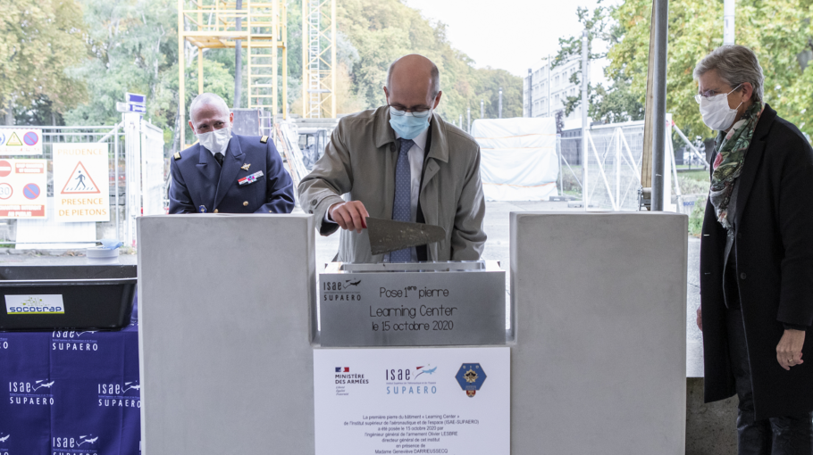 Après les discours et les remerciements, les trois autorités ont signé le parchemin scellant la première pierre du Learning Center dont l’ouverture est programmée pour la fin de l’année 2021. Au cœur du campus, le futur Learning Center rassemblera en un même lieu bibliothèque et espaces de travail collaboratifs, showroom et espace d’accueil d’évènements. Sa mise en service accompagnera à la fois le développement des formations de l’ISAE-SUPAERO et l’évolution de leurs méthodes pédagogiques, de plus en plus tournées vers les projets, et la forte croissance de ses activités de recherche et d’innovation.