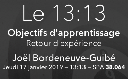 Prochain 13:13 : on y parlera « Objectifs d’apprentissage » - jeudi 17 janvier